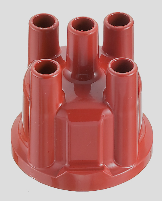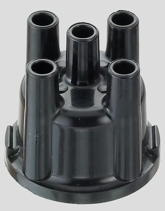 The cap receives the high-voltage current from the coils and distributes it, via the rotor, to the spark plugs. It is positioned at the top of the distributor and contain the rotor, which passes close to the metal inserts inside the cap, which are connected, to the various spark plugs with high voltage cables.